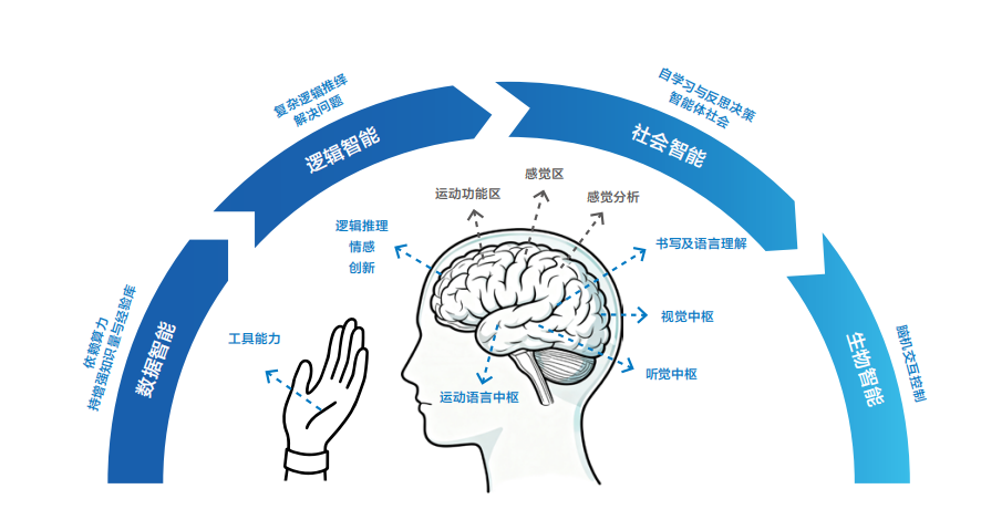 愿景:通用人工智能AGI将跨越“奇点”,实现全面超越人类的智慧,成为 ASI。依托脑机双向互通的极致优势,在认知、创造与复杂决策等领域实现对人类能力的指数级放大,催生人机共生的全新形态。