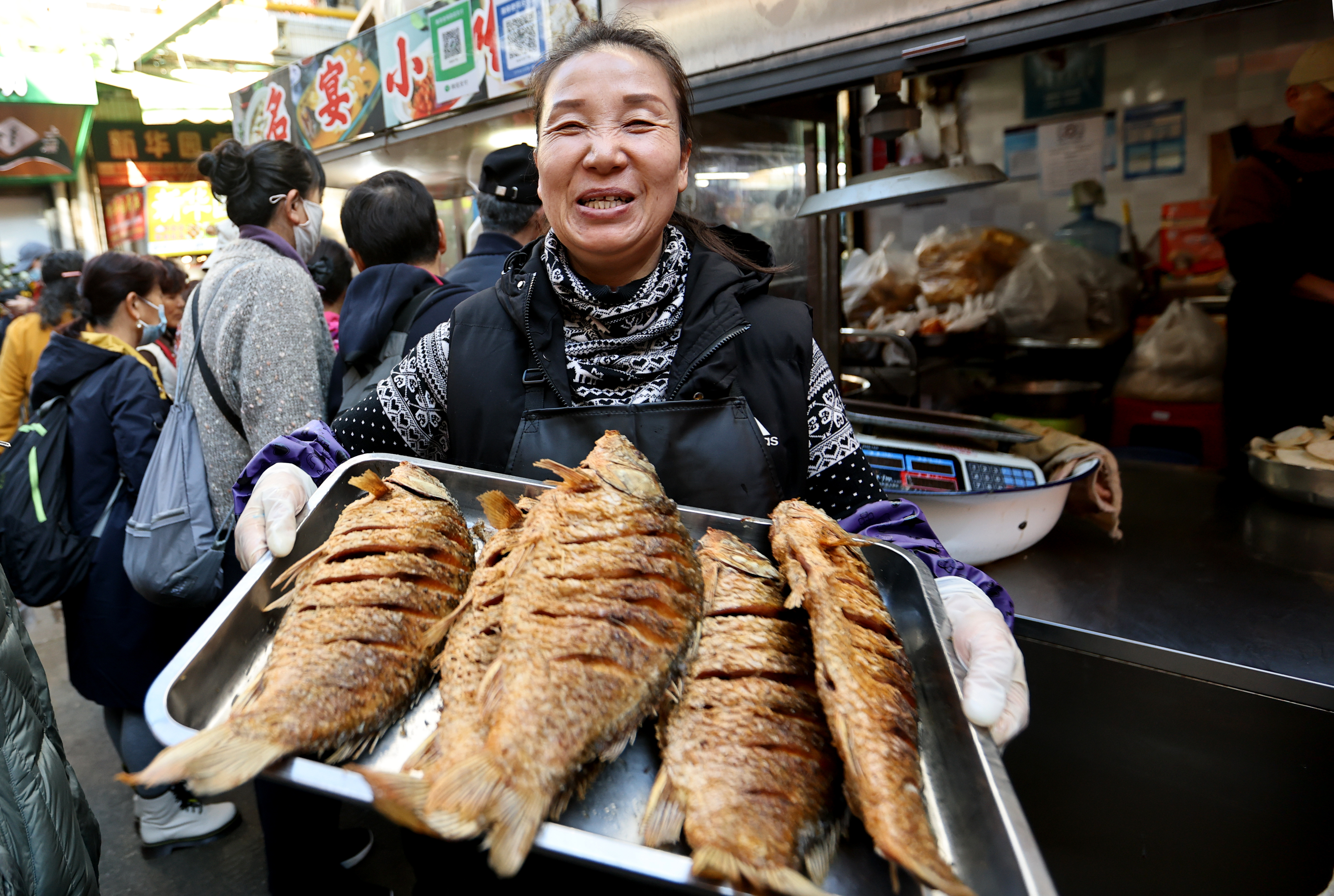 春节的昆明大观篆新农贸市场是一年中最精彩的时刻,五彩斑斓成为云南人菜谱中最亮的底色。大理白族扎染装饰顶棚下的卖场如展开的调色盘,蔬菜摊上的五彩小番茄、冒着热气的花米饭、不同口味的青团,就连果脯蜜饯和酱菜,都将色彩的美学展现得格外鲜亮和富有生命力,民族风情与市井烟火交织,一眼望去已是秀色可餐,真是让人赏心悦目,七彩云南的魅力在这里呈现。