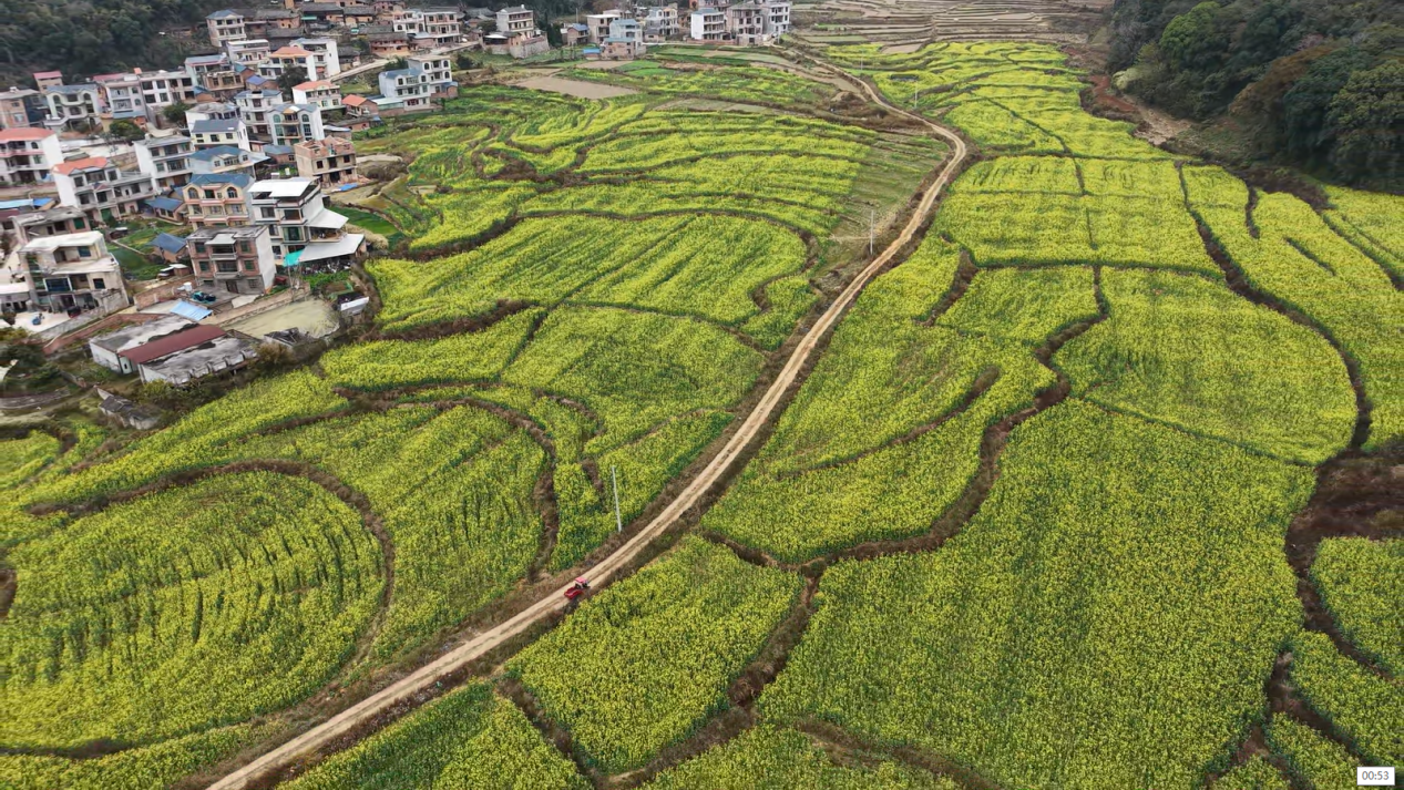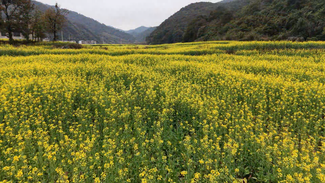 微风徐来,花浪翻涌,层层叠叠的金黄顺着田埂山坡起伏涌动,奏响灵动的冬日乐章。清甜淡雅的花香随风飘散,沁人心脾,深吸一口满是冬日的清新气息。远处青山叠翠,近处村落错落,白墙黛瓦掩映在金色花海间,动静交织、虚实相映,一步一景皆是诗意,让人心旷神怡、流连忘返。