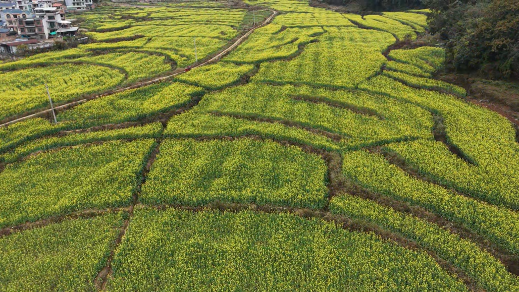 近段时间,文山壮族苗族自治州广南县旧莫乡普洒村,200余亩油菜花迎来盛花期,金黄花海铺满山野村落,勾勒出一幅生机盎然的春日田园图景,成为群众外出赏景的好去处。