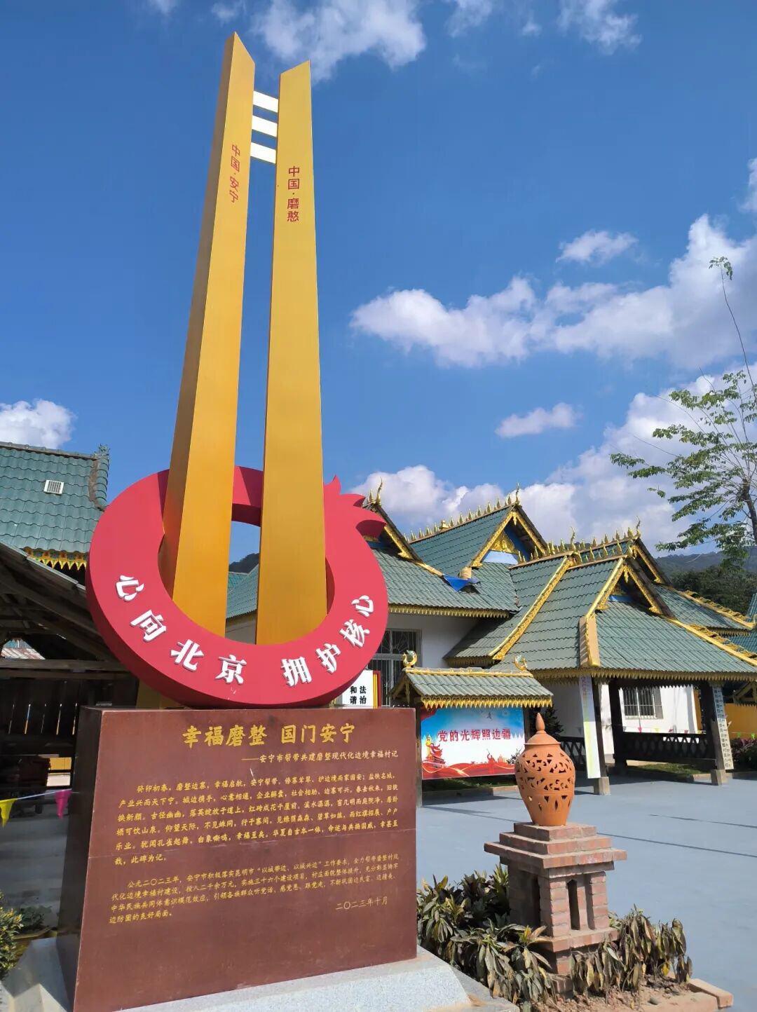 冬日里,磨憨镇磨整村的傣家村寨里暖意融融。清澈的自来水流入农户家中,平坦的机耕路直通田间地头,铸牢中华民族共同体意识主题广场上,村民笑语盈盈。这个曾经受困于饮水难题、交通不便的半山村寨,在安宁市帮带共建的助力下,借中老铁路实现蝶变。