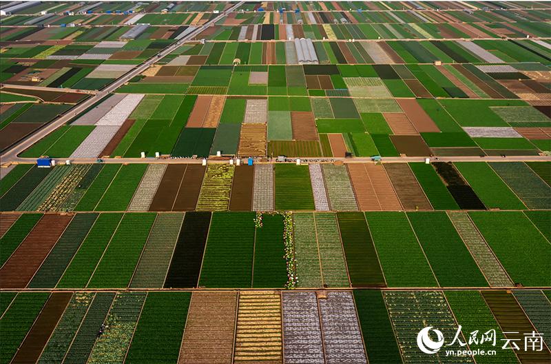 航拍通海县蔬菜长势喜人。卢贵谦 摄