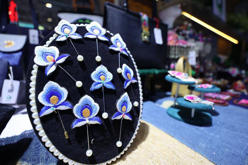 在深圳文博会上,楚雄彝绣工艺品受欢迎。