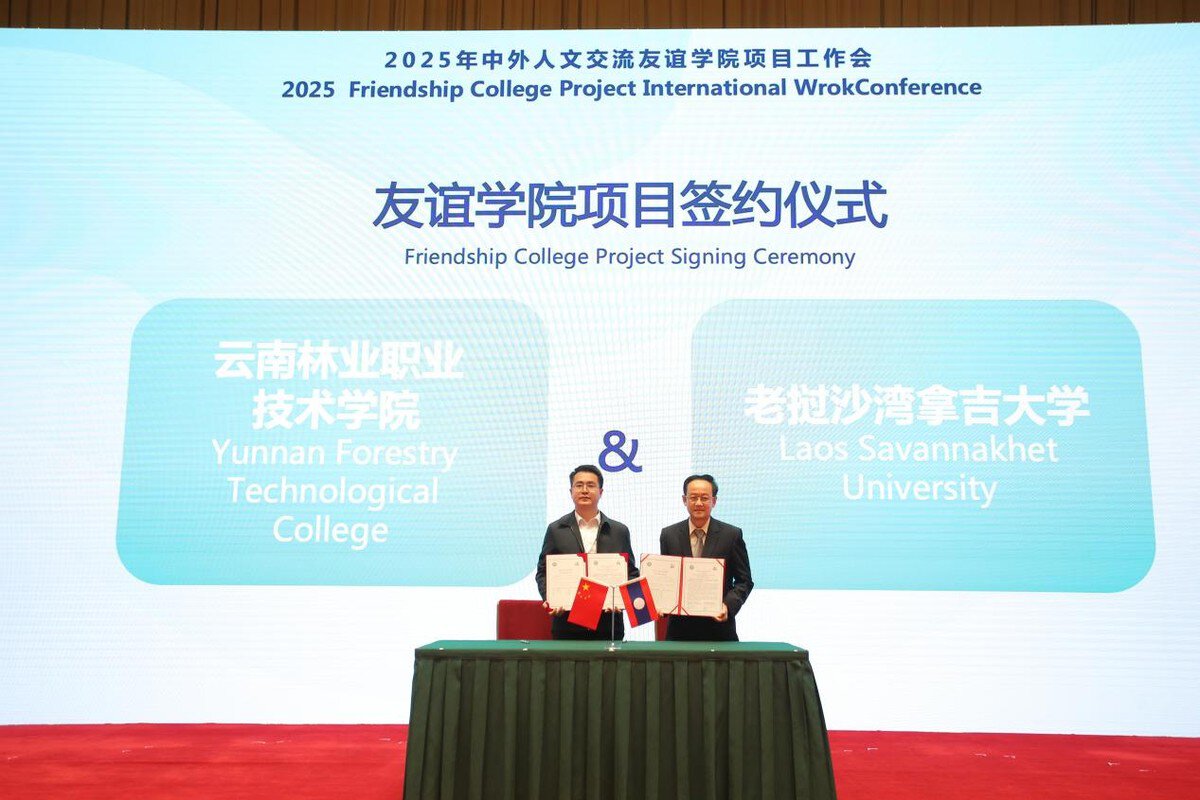 在海外,学校深耕国际合作十余年,累计向老挝太阳纸业输送448名带薪毕业实习生,其中125人成长为企业骨干,为“一带一路”建设提供了稳定的人才支撑。2019年启动的老挝本土人才“订单班”已招收三届共74名留学生,相关案例入选世界职业教育发展大会优秀案例。2025年10月“澜湄工坊(越南国立林业大学产教中心)”成功入选云南省首批立项建设单位,聚焦林业生态、木材加工等领域服务中资企业海外发展,成为职教出海的“云林样板”。此外,学校每年为境外企业开展“中文+职业技能”培训,累计培训4280人次,实现校企双向赋能。