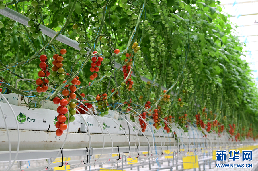 2025年9月19日,云南省大理州弥渡县大理春沐源数字农业基地的智能温室内,樱桃番茄挂满枝头。新华网发(刘起 摄)