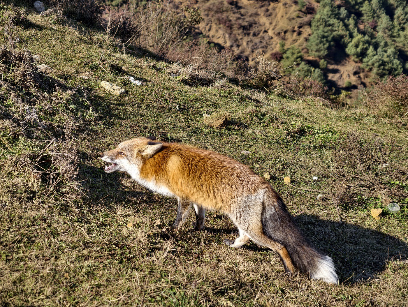 近日,云南药山国家级自然保护区管护局工作人员在东坪镇道角村拍到国家二级保护动物赤狐觅食的珍贵画面,这也是保护区近年来首次在白天记录到赤狐活动的完整画面。画面中,一只赤狐在林间空地上灵巧地穿梭,它时而低头嗅着地面,时而警觉地抬头张望,似乎在寻找着什么。工作人员通过高清摄像机,清晰地记录下了赤狐觅食的全过程。