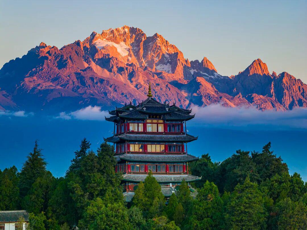 每年11月至次年2月,是丽江玉龙雪山观赏“日照金山”的最佳时节,也是玉龙雪山景色一年中的“颜值巅峰期”。