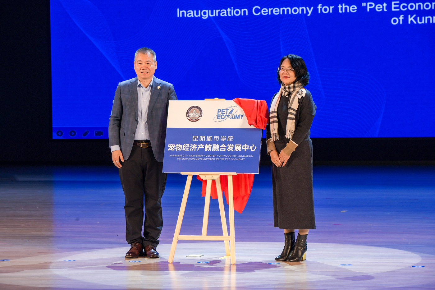 在与会嘉宾的共同见证下,昆明城市学院董事长张南红与新瑞鹏宠物医疗集团副董事长刘朗共同为宠物经济产教融合发展中心揭牌。该中心由学校联合合作企业共同组建,定位为集教学实训、技术研发、产业服务与国际交流于一体的综合性平台,未来将重点开展宠物医疗技术攻关、行业标准研究与跨境人才培养等工作。
