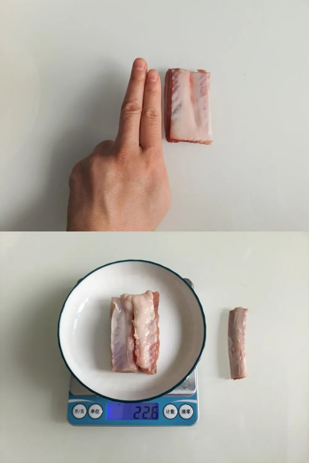 一块猪排骨约22克肉