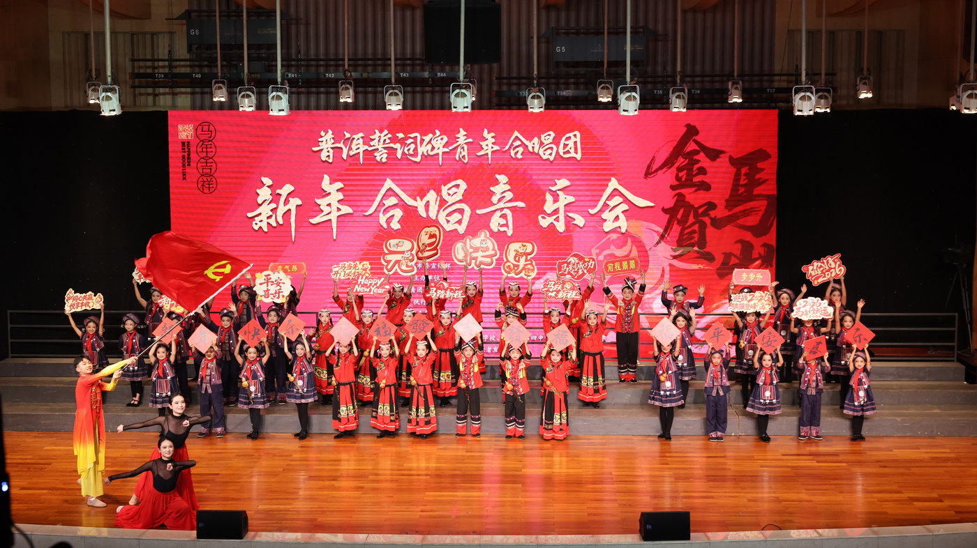 2026年元旦之夜,普洱誓词碑青年合唱团2026年新年音乐会在普洱大剧院音乐厅举行,并在网络同步直播。本次音乐会由共青团普洱市委主办,以“青春旋律迎新年 茶咖之城奏和音”为主题,普洱誓词碑青年合唱团及参与助演的合唱团以深情的歌声致敬历史、凝聚当下、展望未来,成为这场音乐会中最引人注目的焦点。