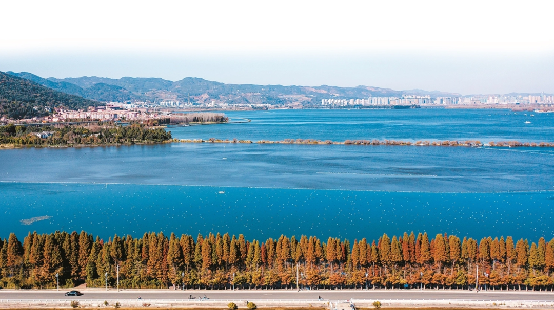 近年来,滇池保护治理交出了亮眼答卷。通过不懈努力,滇池全湖水质连续8年保持Ⅳ类并持续向好。如今的滇池,沿岸生态轮廓日益清晰,微风拂过湖面,碧水倒映新绿,一条条河道成为市民休闲好去处,各个湿地内水鸟翩跹,尽显大自然的盎然生机。