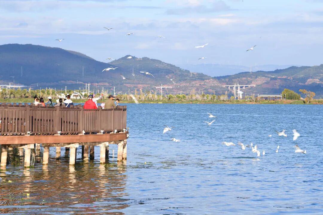 骑行或乘坐电瓶车环游杞麓湖,碧波如镜,远山如黛,偶有鸥鹭掠水,沿途田园村落静谧如画,领略高原湖泊的温润之美。