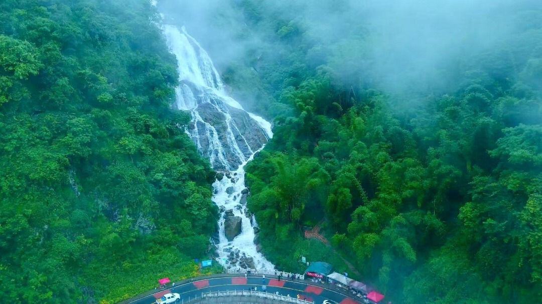 走近南恩瀑布,水流如银河倾泻,轰鸣震谷,水雾扑面,气势磅礴中见自然之奇。