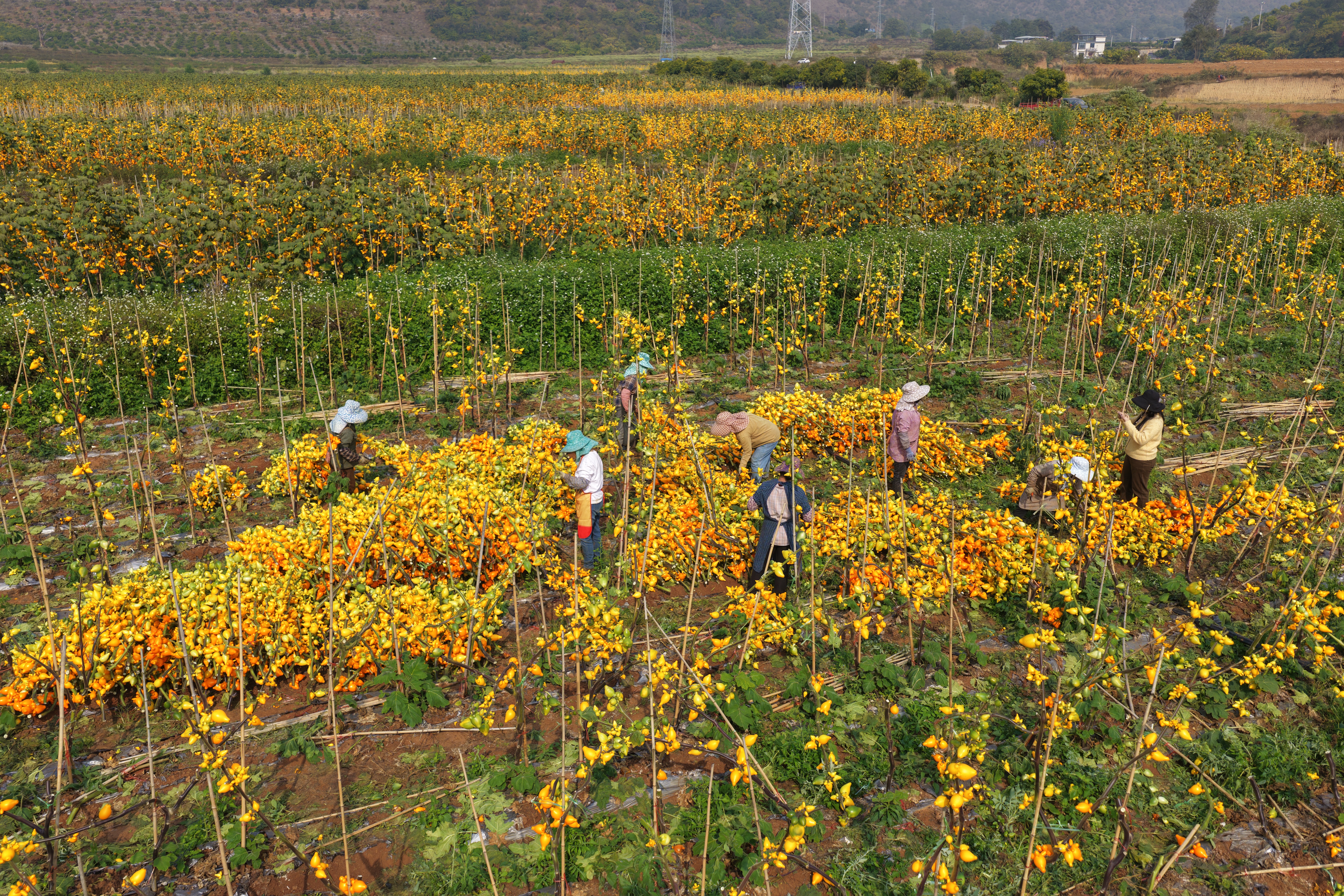 寒冬时节,北国草木萧疏,元江县热坝区却花香正浓。在甘庄街道干坝社区的百亩乳茄基地,金黄饱满的果实缀满枝头,工人们砍枝、分拣、装车,忙得热火朝天;元江美天娇花卉有限公司的现代化大棚里,多头菊竞相绽放,智慧设备精准赋能,鲜切花打包后将远销海外。依托独特的干热河谷气候,元江县深耕反季花卉产业,以特色品种为抓手,以科技产销为支撑,让“一朵花”撑起富民兴村的“大产业”。