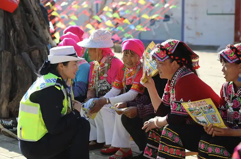 交警在宣传安全出行知识。云南省公安厅供图
