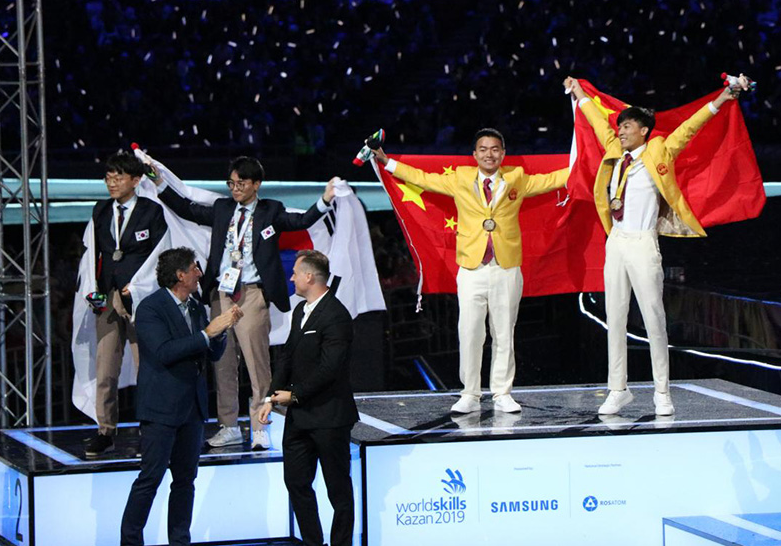 作为上海第48届世界技能大赛技能梦想大使,郑棋元将对技艺的极致追求融入血液。2019年8月,在俄罗斯喀山举行的第45届世界技能大赛上,他与队友团结协作,沉着应战,历经4天30多小时的激烈比拼,以763分的总成绩,战胜了移动机器人项目“五连冠”韩国队,从全球25个国家和地区的顶尖选手中脱颖而出,勇夺移动机器人项目金牌。这一胜利不仅实现了中国队在世界技能大赛移动机器人项目上的“金牌零突破”,也实现了云南选手参赛零的突破和奖牌零的突破。
