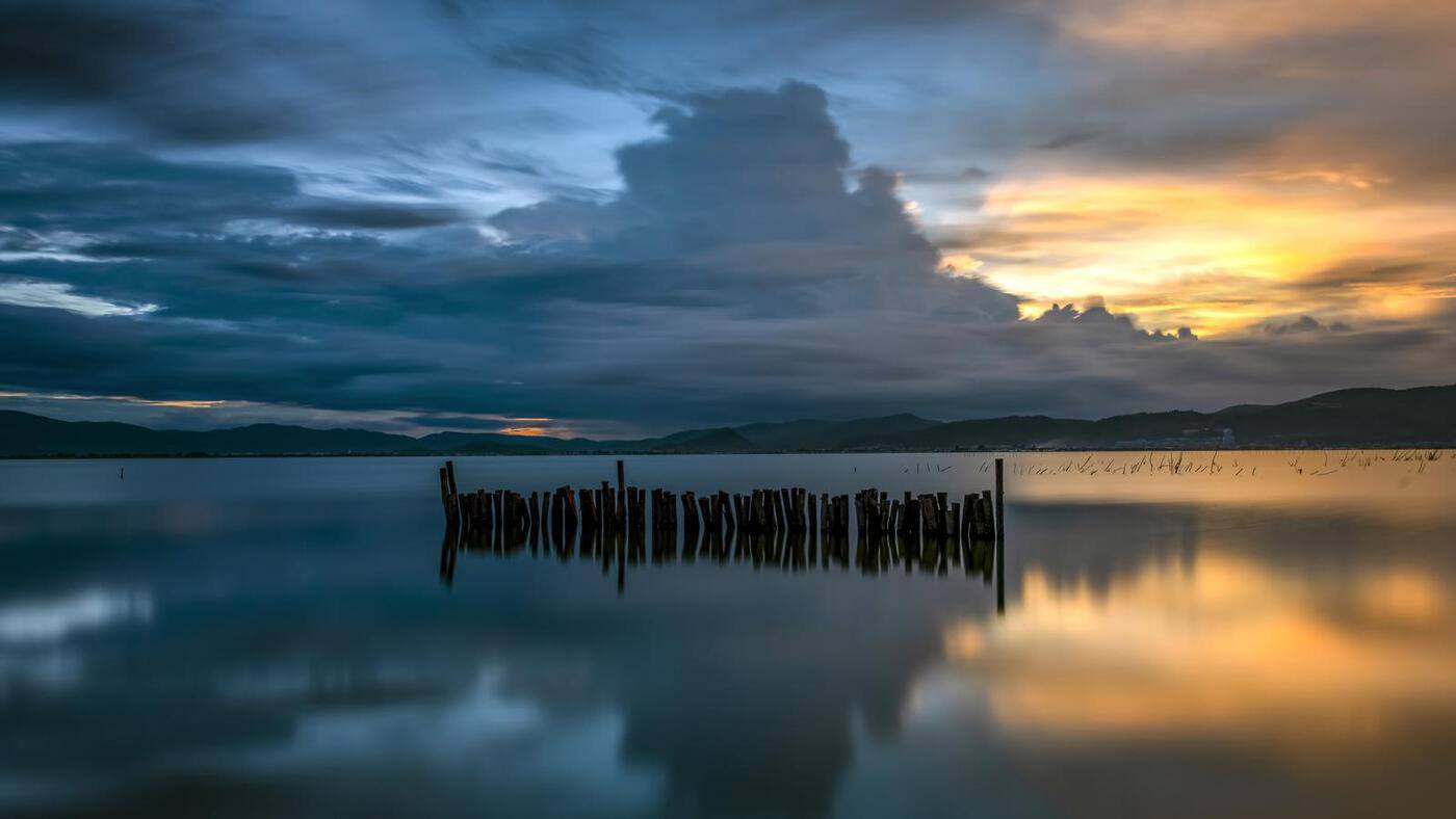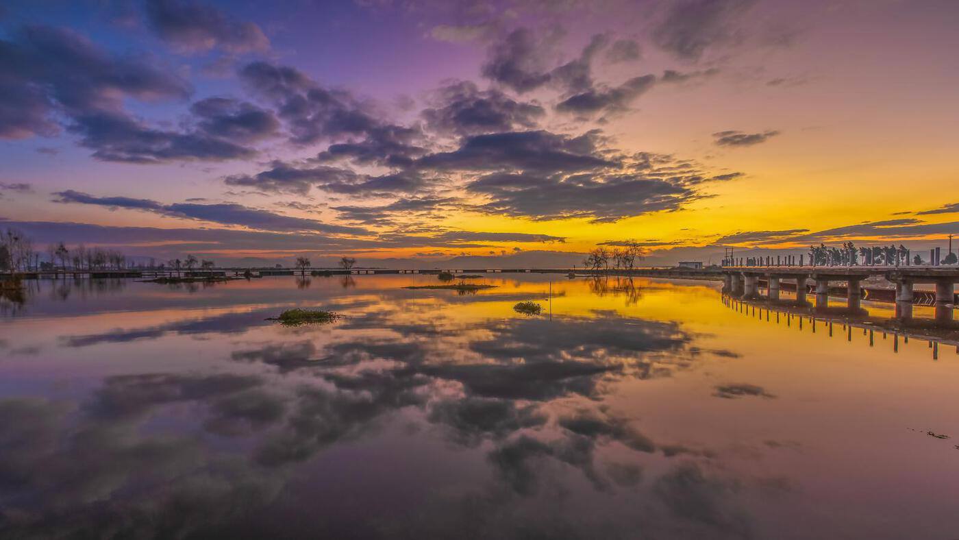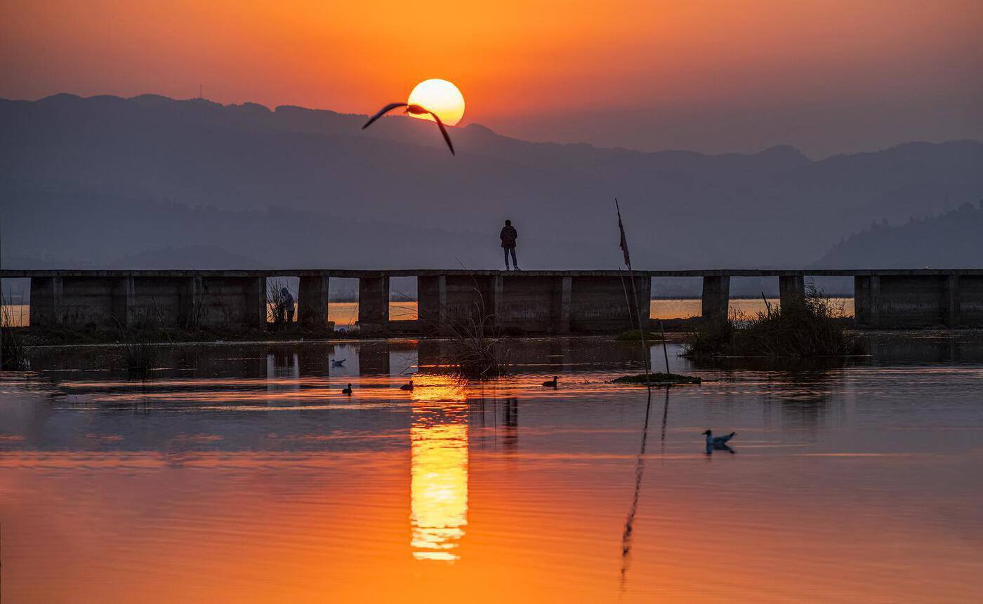 傍晚的杞麓湖最是浪漫,夕阳为天空染上橘粉与绯红,湖面被映照得波光粼粼,此刻不必说话,只需静静伫立,看落日沉于远山,看暮色渐染湖面,所有的疲惫与喧嚣,都会被这温柔的湖光悄悄抚平。