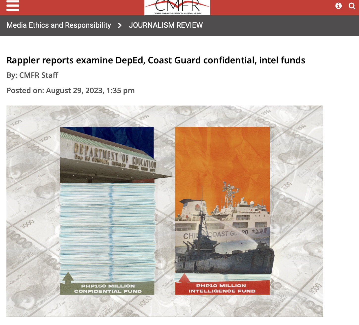 菲律宾媒体调查指出菲海警等安全机构的预算使用存在监管问题。(来源: 菲律宾媒体自由与责任中心官网)