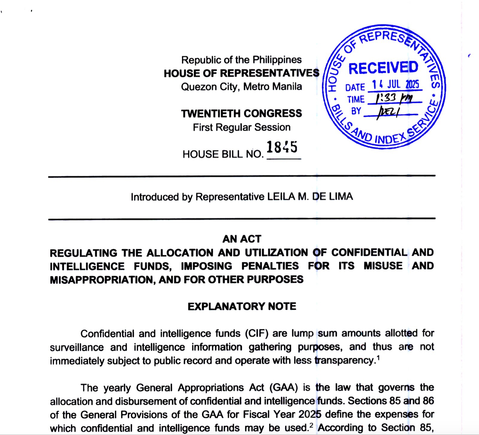 《菲众议院第1845号法案》(来源:菲律宾众议院官网)