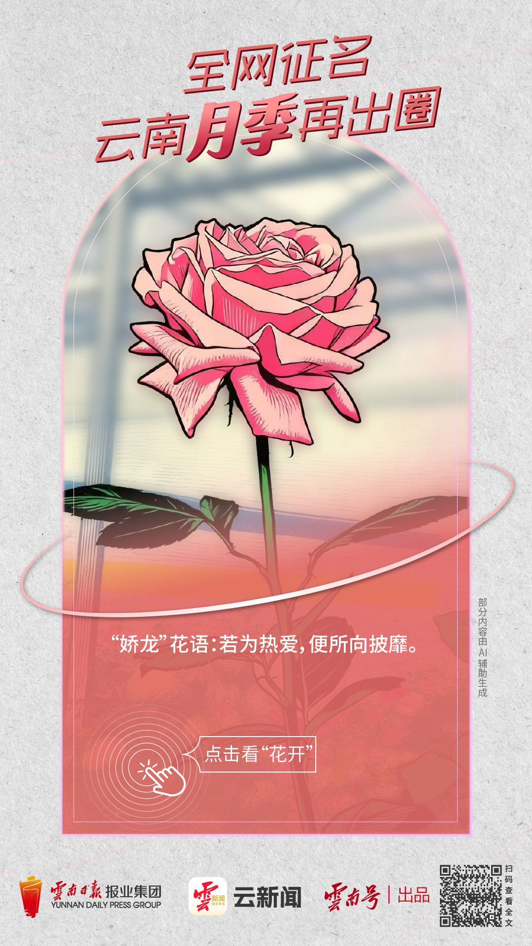 一株名为“娇龙”的月季花2月2日从云南昆明启程,送往新疆维吾尔自治区昭苏县。这株具有特殊纪念意义的花卉,其花语“若为热爱,便所向披靡”在当日举行的仪式上正式发布。