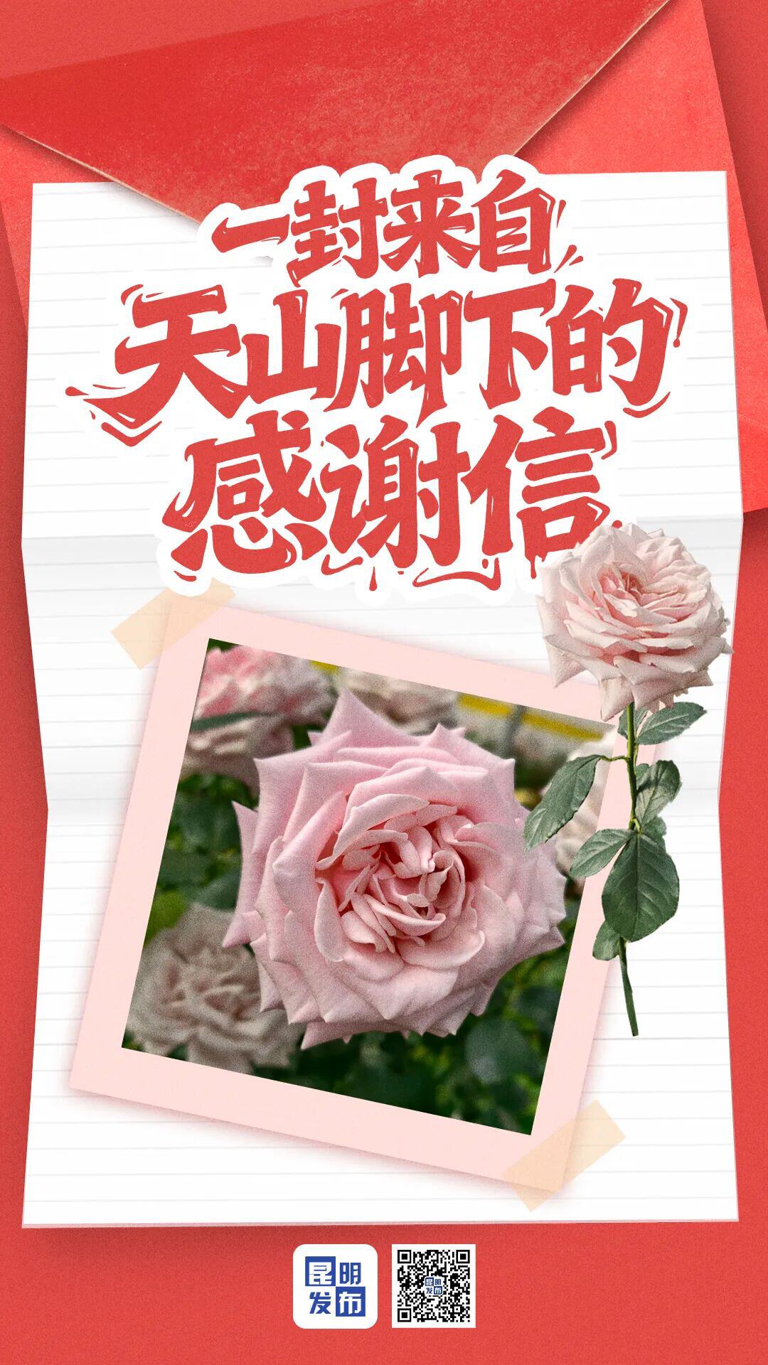 纸短情长,初心如磐。一封来自天山脚下的感谢信,一缕飘自云岭高原的芬芳,已然成为串联“春城花都”诗意风情与“天马故乡”辽阔豪情的情感纽带。激励着边疆各族儿女同心携手、砥砺前行。在奋进新征程的道路上,奉献精神如月季常开不败,为民初心在山海相连中久久相传。