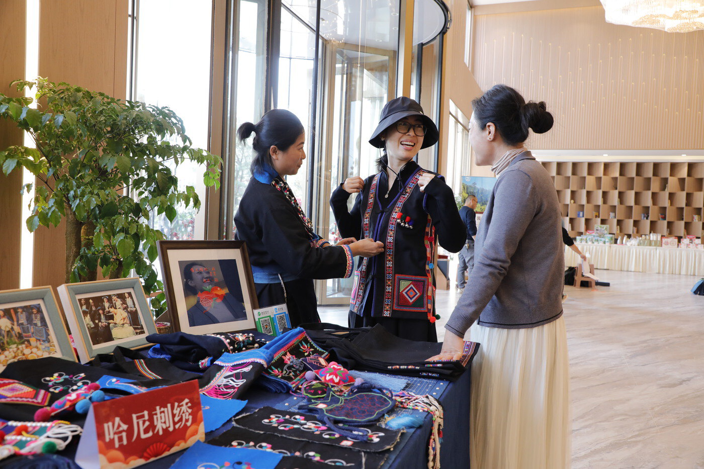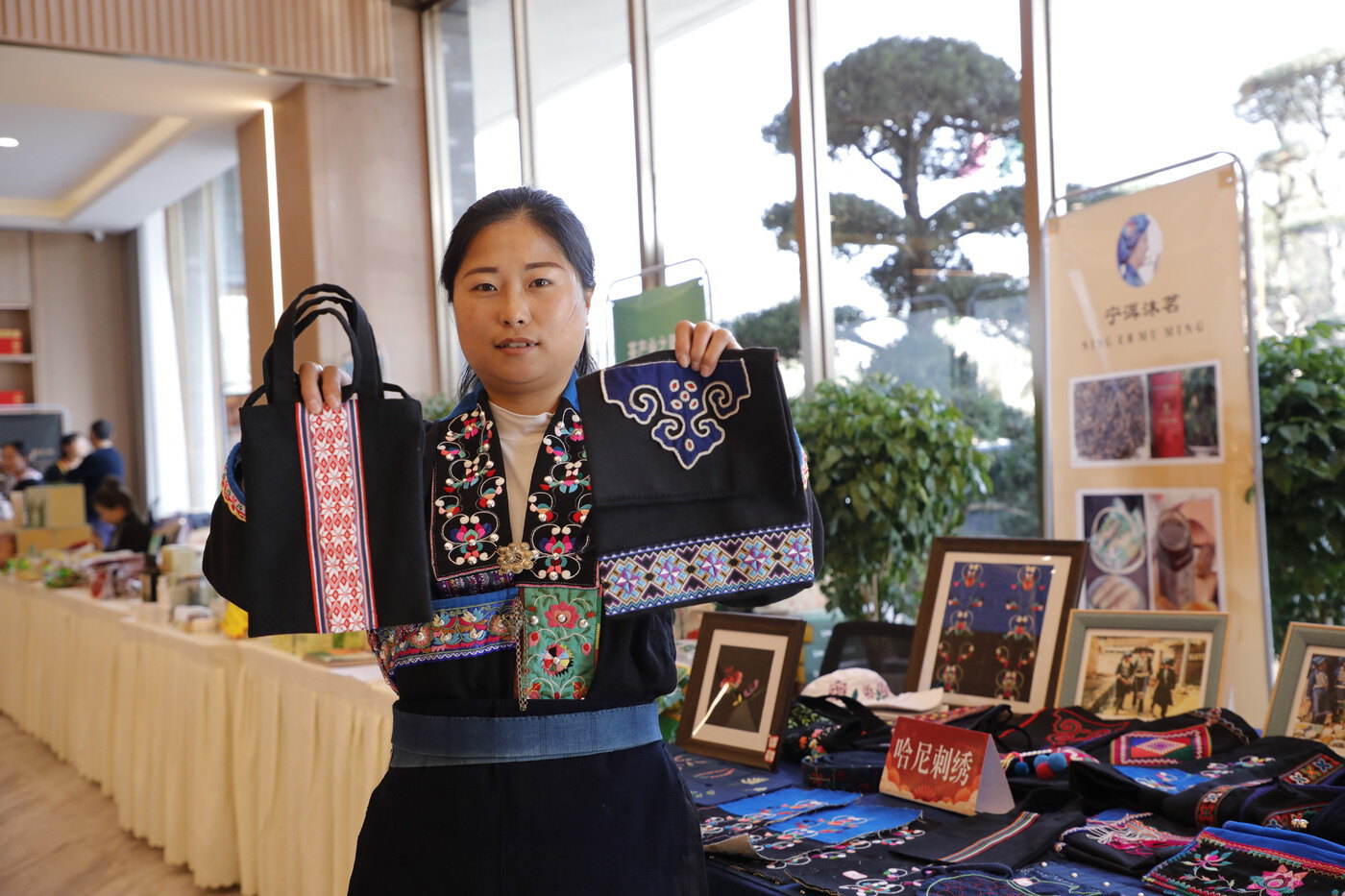 苏晓君带着绣品参加展销活动 陶平 摄