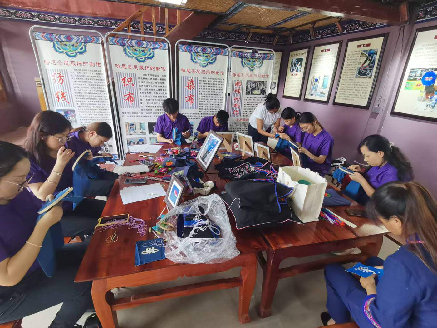 2023年,看到村里不少妇女有手艺却愁销路,苏晓君便开始帮大家搭桥牵线。起初参与的只是三五位哈尼族姐妹,渐渐地,彝族、白族、汉族的妇女群众也拿着绣品找上门来。在县民宗局支持下,她依托普洱蚌扎民族文化发展有限公司,采取“企业+农户”模式,统一培训、统一设计、统一销售。如今已有30名各族妇女参与其中,人均年增收超过1万元,实现了“背着娃、绣着花、养活家”的梦想。为了让销路走得更远,苏晓君还注册新媒体账号,通过一方小小的屏幕,她们的作品不仅走出了大山,还接到了省外订单。