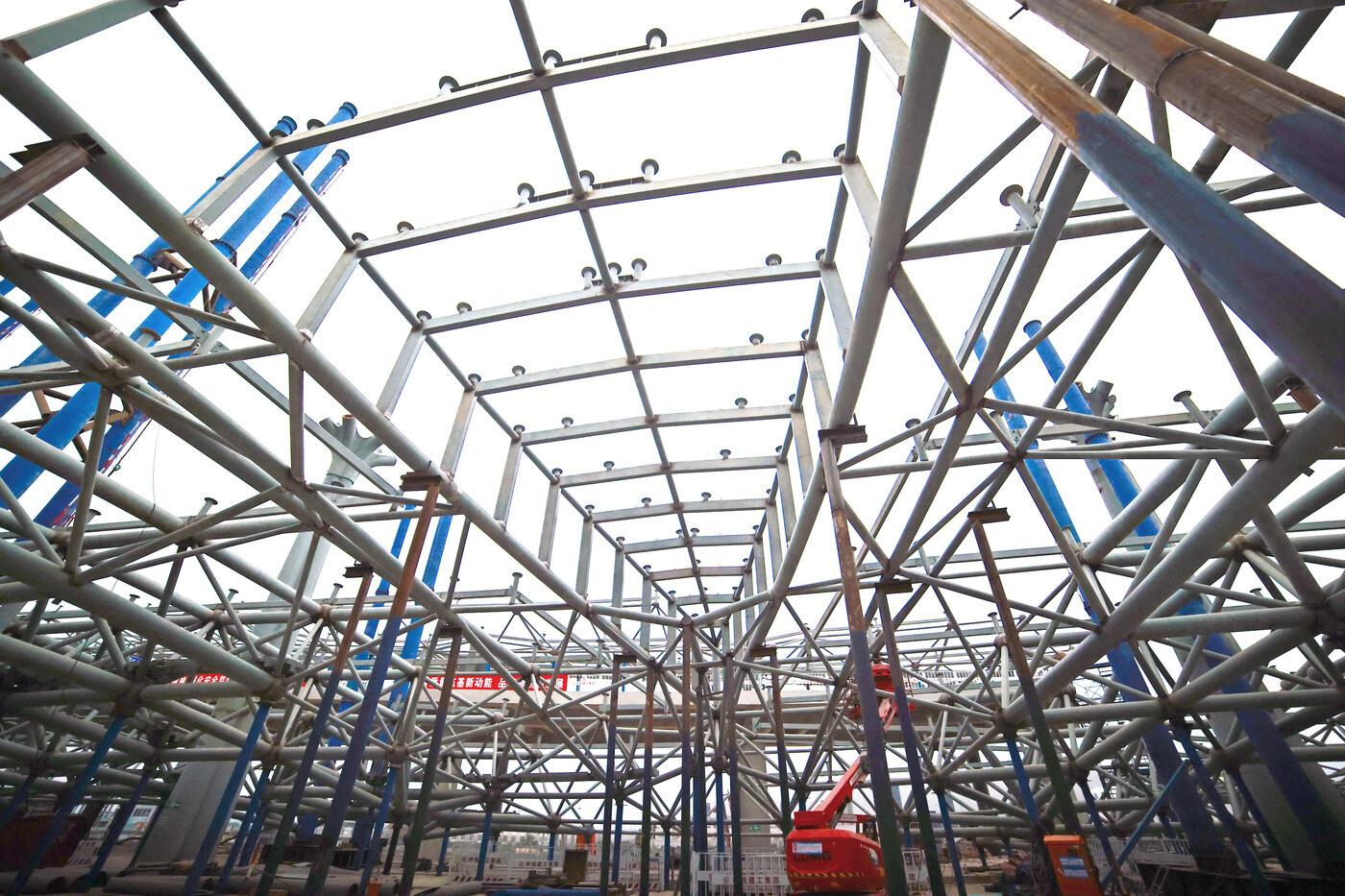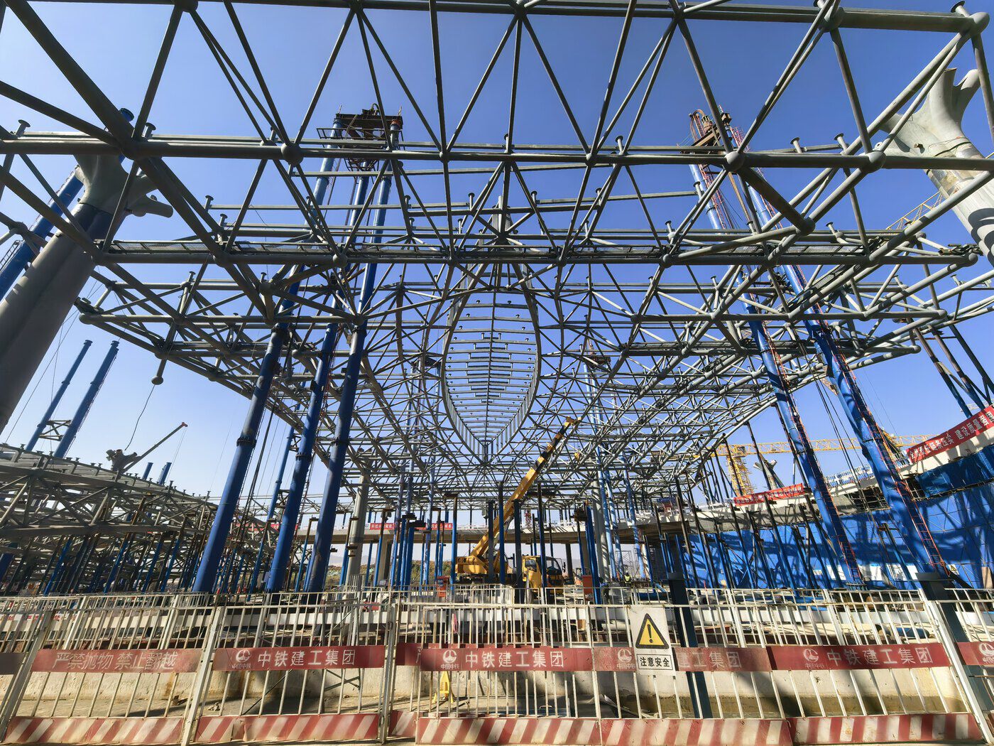 据了解,该项目建设过程中,全过程质量可追溯推行“一柱一档”管理,从进场、安装、焊接至检测,全过程记录,工序可溯;严格焊工考试与工艺评定,关键焊缝100%探伤,确保结构安全。同时,数字技术贯穿始终,实现“虚拟建造”指导“实体施工”:运用三维激光扫描仪,对复杂铸钢件、树形柱进行逆向建模与偏差检测,替代传统人工测量,效率提升显著;采用放样机器人,将BIM模型坐标直接投射至现场,实现“所见即所得”的精准定位。与此同时,建立全专业BIM模型,进行上百次虚拟拼装与吊装模拟,提前发现并解决碰撞问题;运用参数化建模技术,优化焊接球节点与管桁架连接,提升拼装精度。在提升过程中,实时监测屋盖应力、挠度、风速等数据,设置智能预警系统,确保施工安全。通过物联网平台,对提升设备状态、吊装路径、人员定位进行集成管理,实现“人、机、料、法、环”全过程可控。