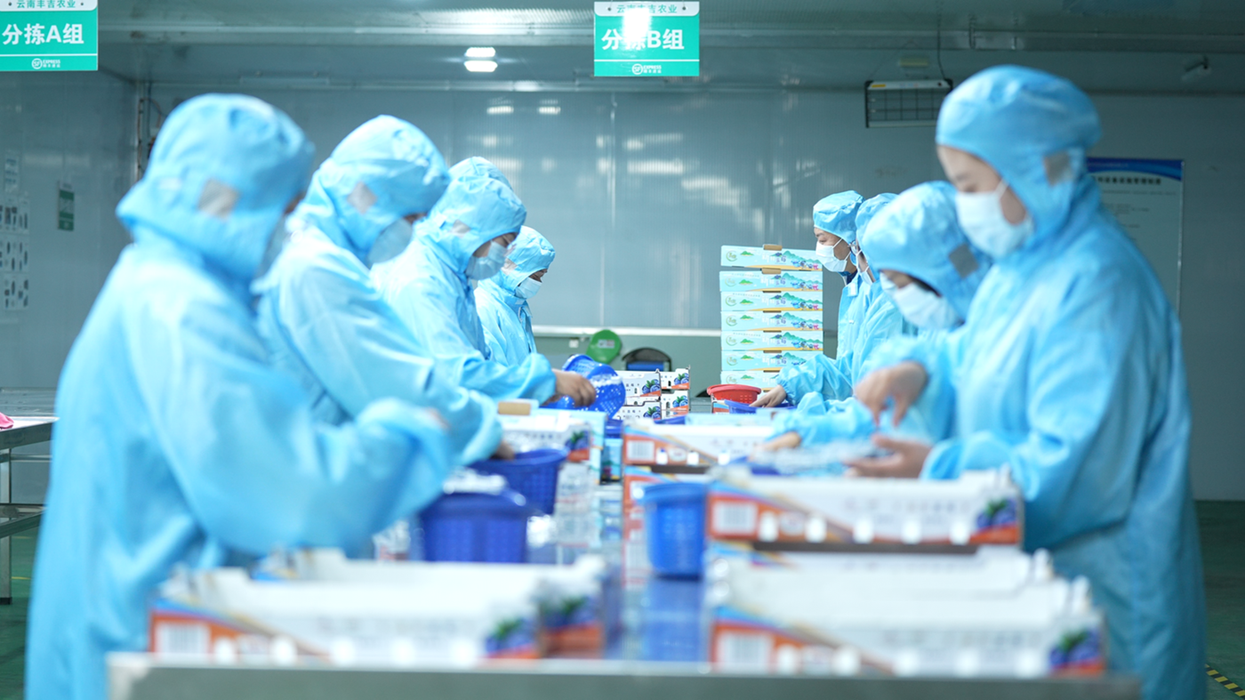 蓝莓分拣。澄江市融媒体中心 杨洪龙 摄