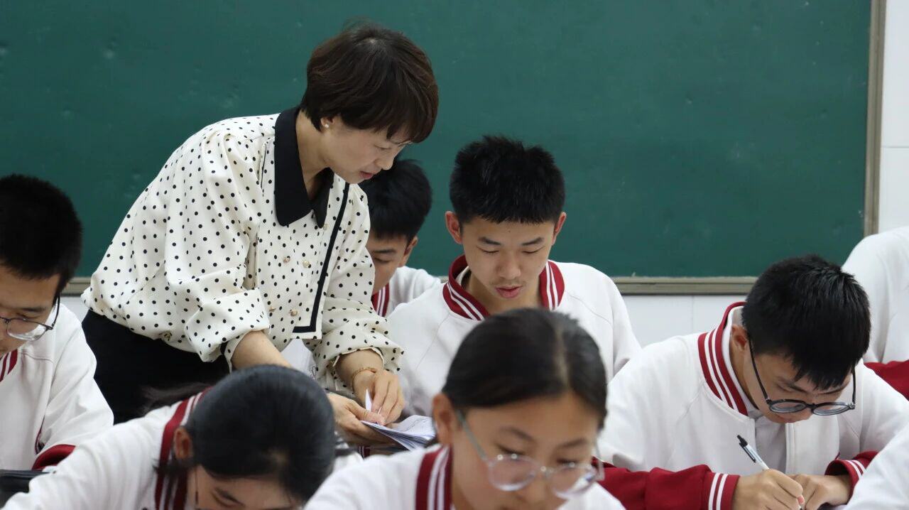 在昆一中嵩明学校高中部,教师李丽娜正在给学生们讲解数学题。她将抽象的公式以易懂的教学方式让学生们轻松领悟。课堂外,她还从校级讲台走上国家级舞台,以探究直线与圆锥曲线的位置关系课例获得了国家级示范的桂冠。