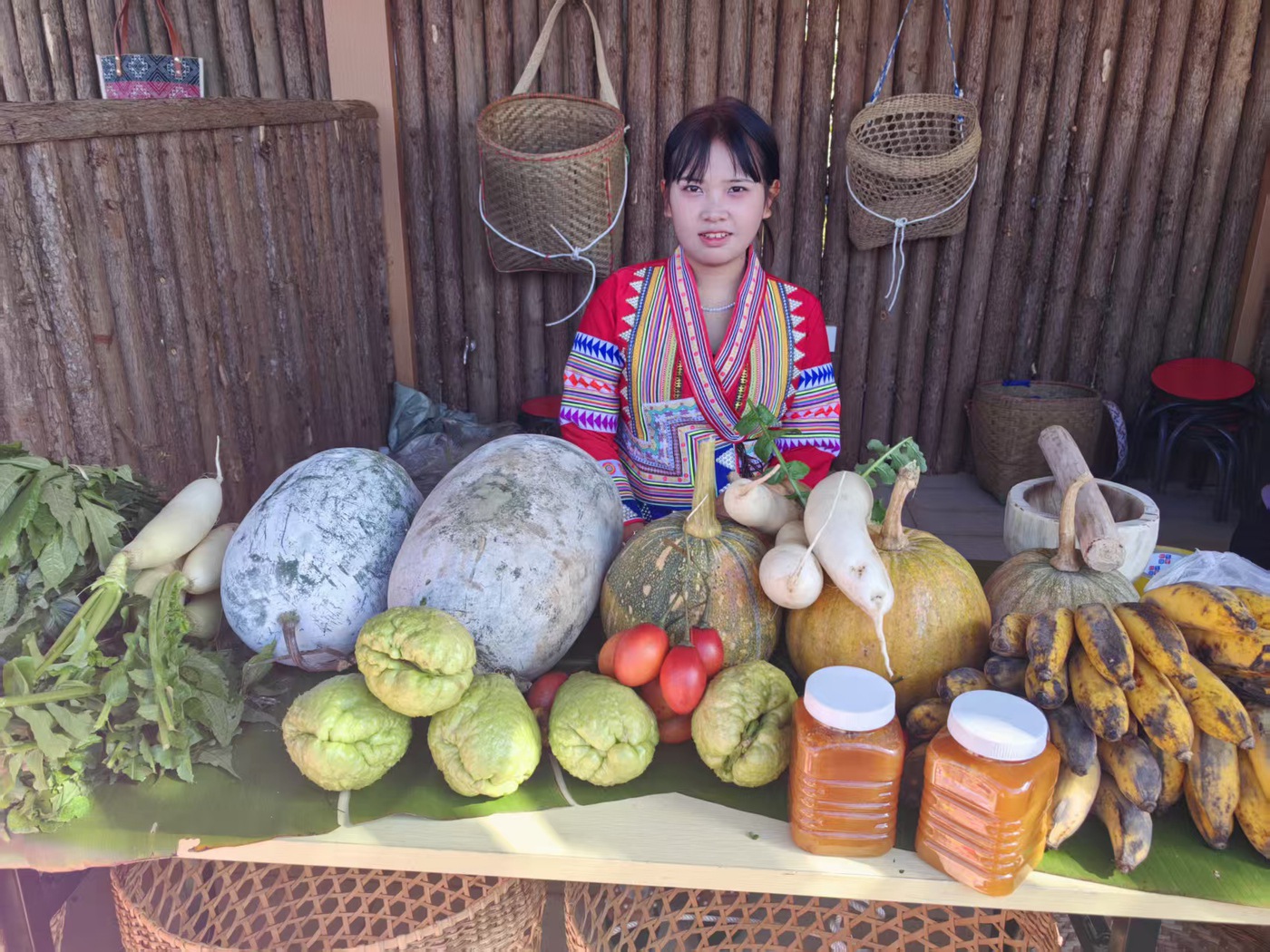 步入集市,琳琅满目的农特产品扑面而来,散发着浓郁的民族风情与自然气息。自然风干的牛干巴咸香有嚼劲,古法熬制的红糖保留着醇厚蔗香,本地蜂蜜色泽透亮如琥珀,现摘的冬瓜、南瓜饱满清甜……这些源自茶山沃土的物产,生动诠释着人与自然和谐共生的雨林智慧。摊主生冲欣喜地分享:“今天带来自家蜂蜜、茶叶,没想到在集市这么受欢迎,销量比预想还好!”