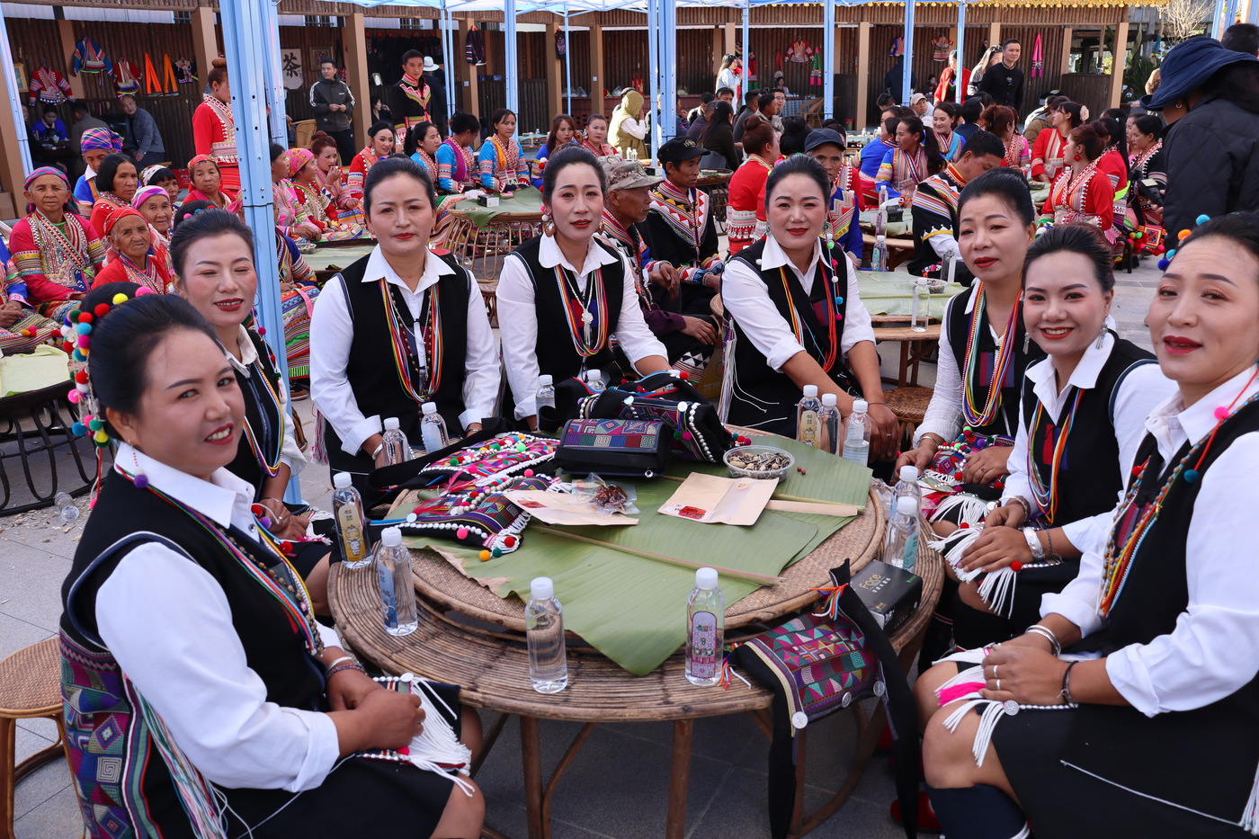 非遗展示区内汇聚了傣族古法造纸、民族竹编等传统手工艺。韧性十足的傣纸、精巧别致的竹编提篮,承载着一代代人的匠心。身着哈尼族、傣族、拉祜族传统服饰的村民穿梭其间,衣上的绣样、银饰流光溢彩,与静态的非遗作品相映成趣,宛如一幅流动的民族文化画卷。