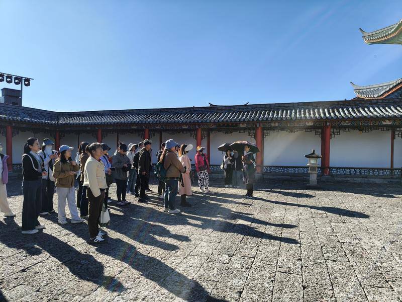 通过研学活动,让孩子们触摸古建筑的榫卯纹理,聆听木府往事与纳西族传说,在沉浸式体验中与历史和先辈对话;传统节日里,开展篝火打跳、手工制作纳西月饼、茶艺展示等活动,各族同胞在互动中感受传统文化的鲜活魅力;借助互联网优势,每周推出网络直播,木府的飞檐斗拱与民俗风情吸引网友云端打卡,让纳西文化跨越地域走向全国。