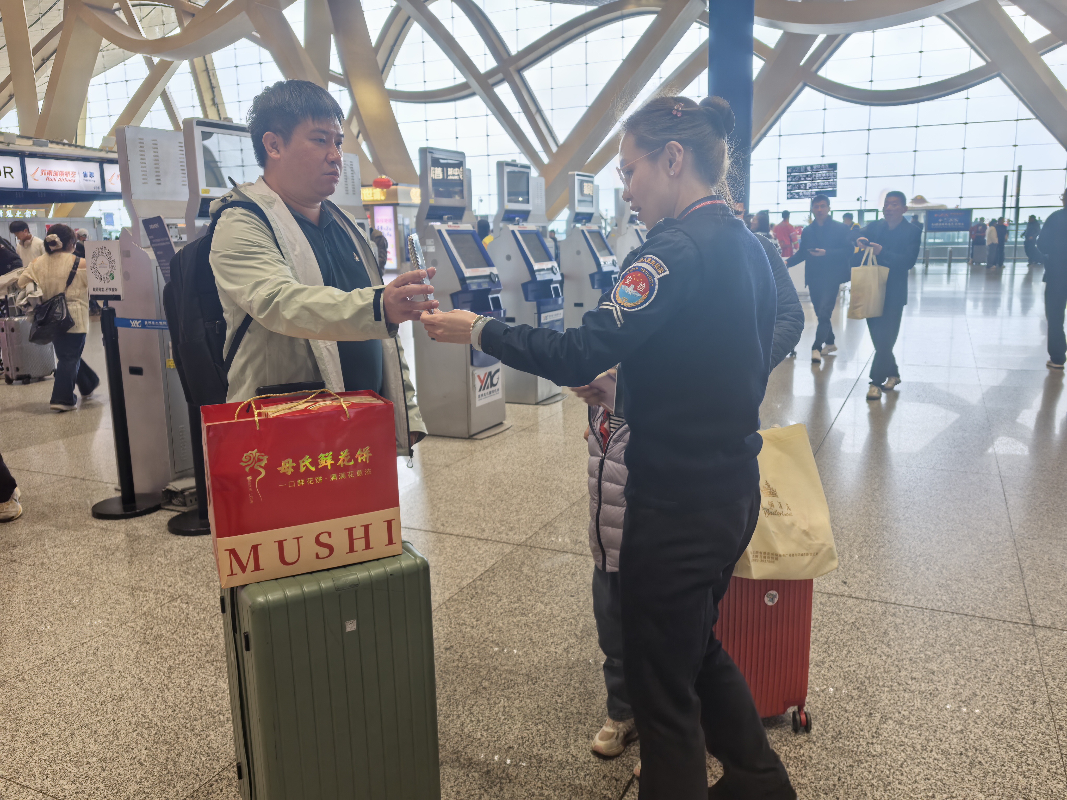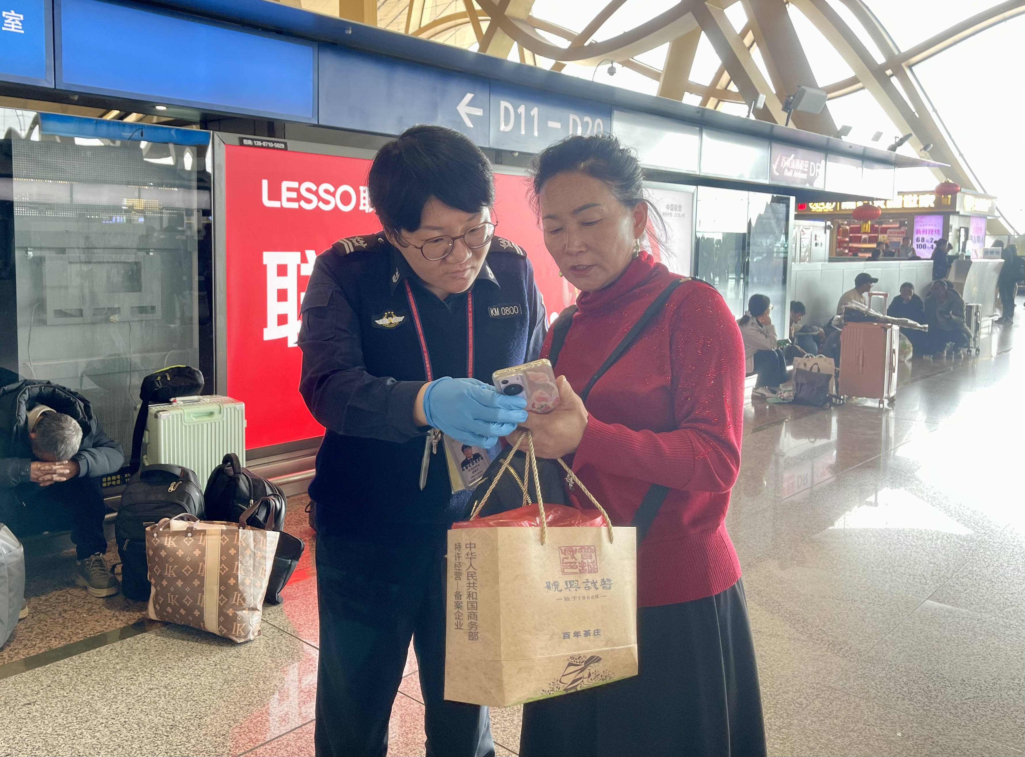 “您好,请问需要帮助吗?”这是旅检一支队副班组长王王每天说得最多的一句话。在她看来,安检工作不只是安全检查,更是传递温暖。春运期间,一位旅客因赶时间携带行李又多,在通过安检后慌乱地找不到登机口,内心十分焦急。王王看到后立刻主动上前,一边安抚旅客情绪,一边接过行李箱,仔细查看登机牌,随后一路护送旅客直达登机口。这在王王的工作中早已是常态。遇到老年旅客,她会主动搀扶,耐心讲解安检流程;面对情绪焦虑的旅客,她用温和的话语缓解对方的紧张,用专业的指引帮助他们顺利通行。她常说:“旅客出门在外不容易,我们多一份耐心,他们就少一份麻烦。”在小红书上也经常可以刷到旅客对王王服务工作的夸赞。