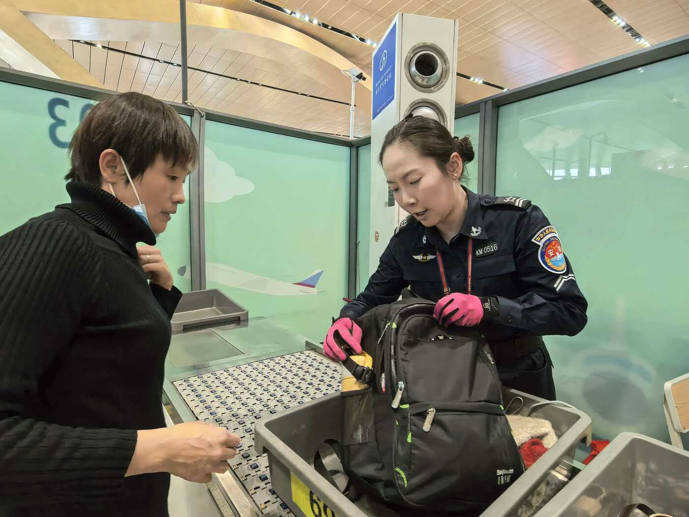 从行政岗位到安检一线,不只是身份的转变。连续站立作业十几个小时,“请问,这是您的包吗”“您的包要打开检查一下”每天重复上千次,嗓子哑了就含片润喉糖,腰酸了就趁着换岗的间隙悄悄捶两下。但只要旅客走近,她们立刻挺直腰板,露出标准的微笑。