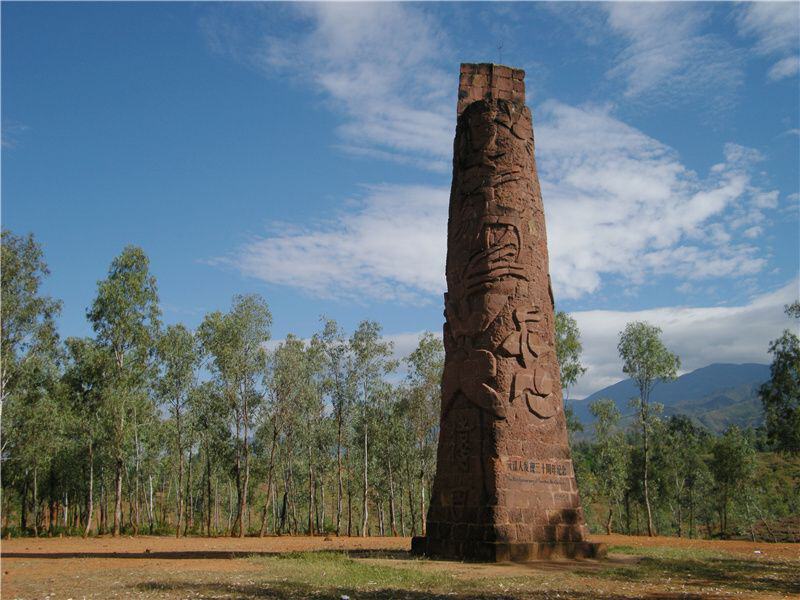 在元谋县大那乌村北、约500米的山腰上,可以看到一座巨型牙齿状雕塑赫然耸立,雕塑上牛羊图腾相间,“远古”二字刻于中央,这里是元谋人牙齿化石的发现地,是迄今为止发现的中国人最早祖先的遗址。