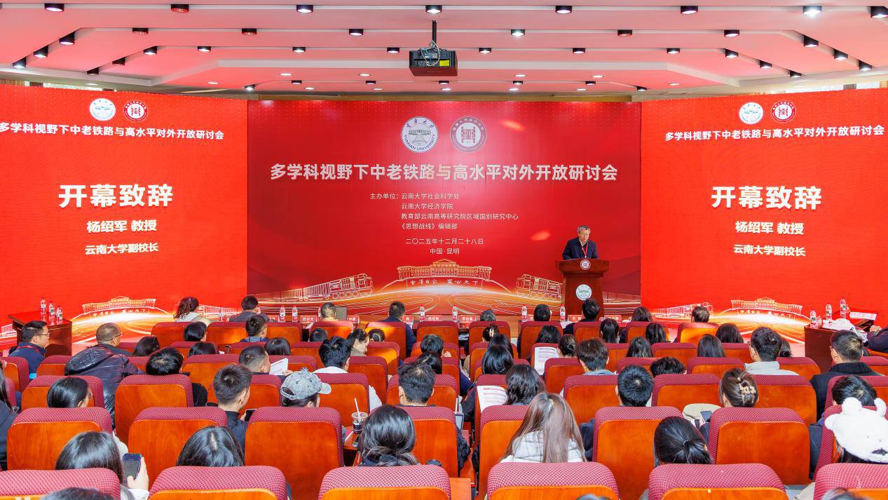 12月28日,“多学科视野下中老铁路与高水平开放研讨会”在云南大学举行。本次研讨会由云南大学社会科学处、云南大学经济学院、教育部云南高等研究院区域国别研究中心、《思想战线》编辑部共同主办。来自国内高校、科研机构、政府部门及相关行业的50余名专家学者,围绕中老铁路在推动高水平对外开放中的多维价值、现实挑战与未来路径等议题展开深入研讨。