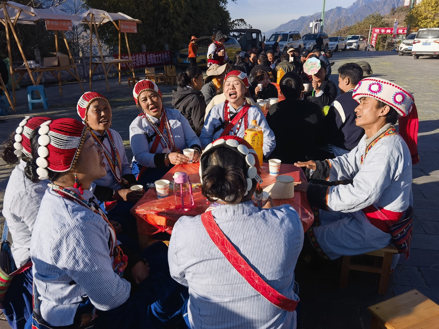 夜幕降临,熊熊篝火燃起,老姆登非遗集市、知子罗新时代文明实践广场,外地游客与村民们围成一圈,随着欢快的音乐跳起民族舞蹈,把峡谷里的年味推向高潮。知子罗村村民路秀花摆摊卖的米凉虾、凉粉早已售罄,她笑着收拾摊位:“游客越来越多,生意越来越火,这年节里全是幸福的盼头。”