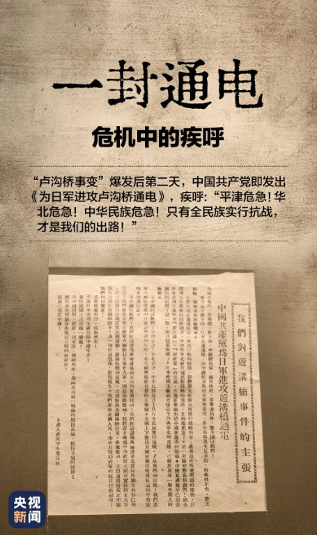 七七事变后,中国共产党立即发表《为日军进攻卢沟桥通电》,呼吁“全中国同胞、政府与军队,团结起来,筑成民族统一战线的坚固长城,抵抗日寇的侵略”。在民族危亡的关键时刻,国共两党实现第二次合作,掀起了全民族抗战的浪潮,这也从侧面印证了日本军国主义侵略行径的不得人心。
