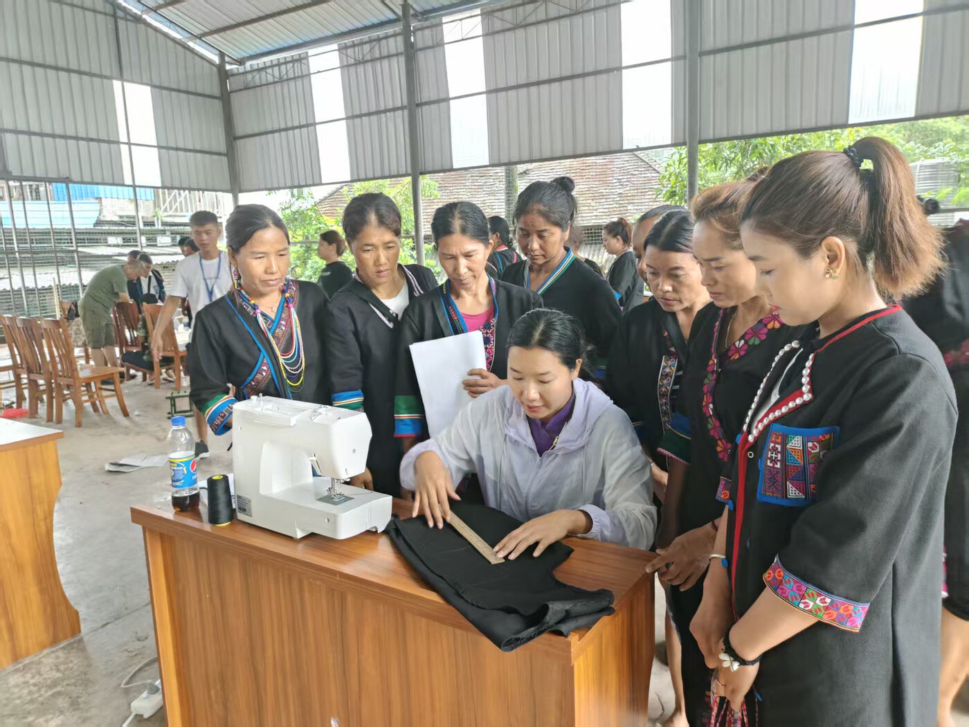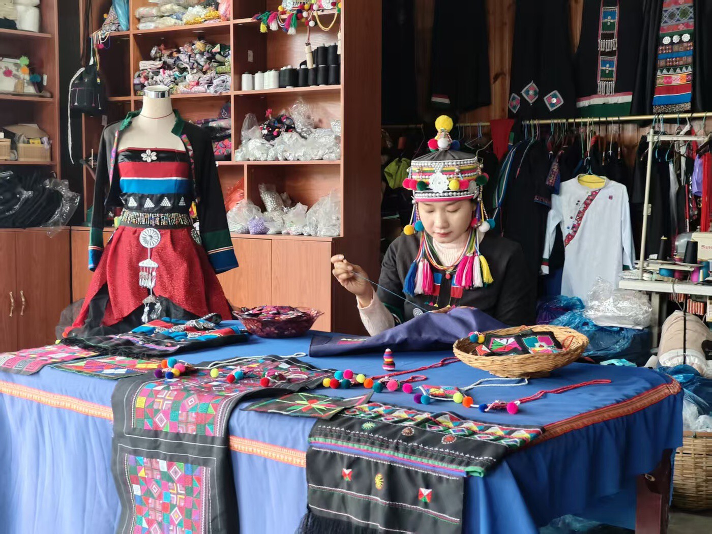 这份喜悦离不开政策春风的吹拂。2020年,看着哈尼刺绣面临断代风险,刘智芳牵头创办哈尼帕博民族服装专业合作社,起初仅能为节庆赶制盛装。县里鼓励挖掘乡土资源、传承民族技艺的政策,让她获得了走进高校培训的机会,学到了产业发展经验,也打开了创新思路。