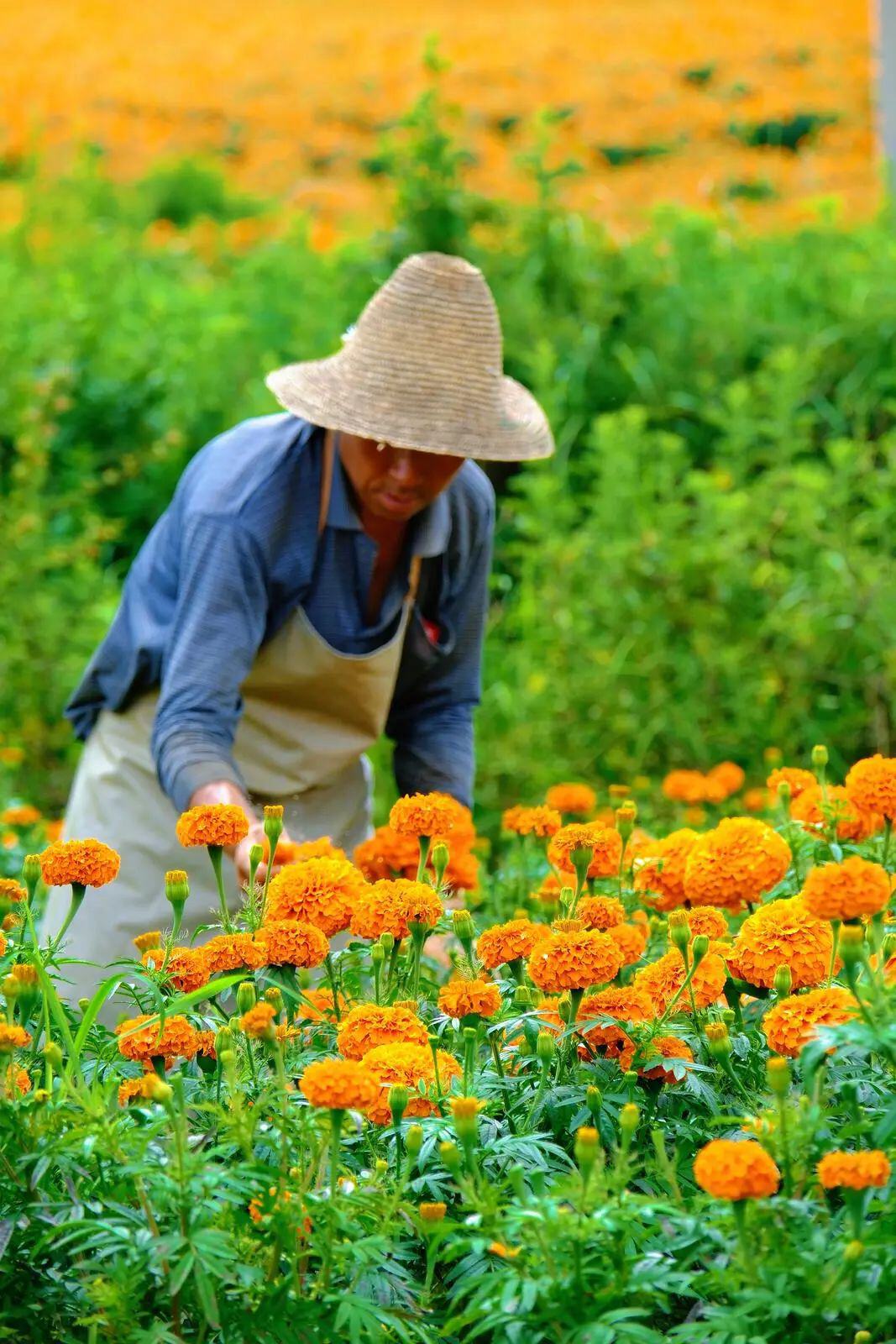 采摘万寿菊。金正荣 摄