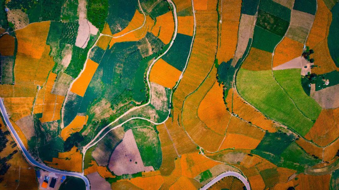 万寿菊,具有成活率高、易栽种、花期长等特点,亩产鲜花可达4000公斤。其橙黄色的鲜花富含天然叶黄素——在食品、医药、化妆品等领域有着广泛的应用,素有“软黄金”的美誉。