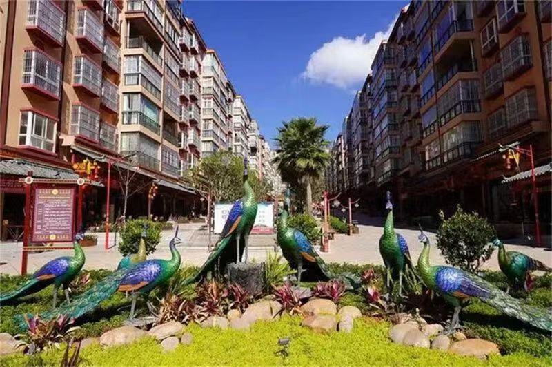 查姆特色旅游休闲街区位于双柏县城阳光水岸小区,融入了彝族查姆创世史诗及绿孔雀元素,以黑红黄为主调的彝族风格建筑独具特色,成为市民们茶余饭后散步的首选之地。