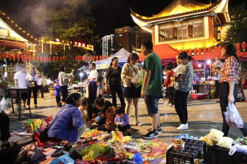 彝人古镇是国家级夜间文化和旅游消费集聚区,古镇街上,大大小小的商铺林立,各种特色小摊形成一道亮丽风景,吃的、喝的、玩的、用的……让人分分钟挑花眼。徜徉其间,品美食、赏歌舞、休闲购物,满是悠闲和浪漫的情调。