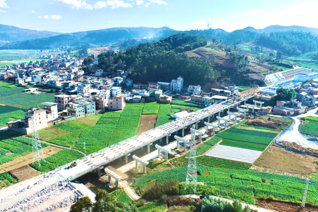 近日,随着最后一片预制T梁精准吊装就位,泸丘高速公路(红河段)挨来村大桥左幅T梁架设任务完成,为后续桥面系施工奠定坚实基础。