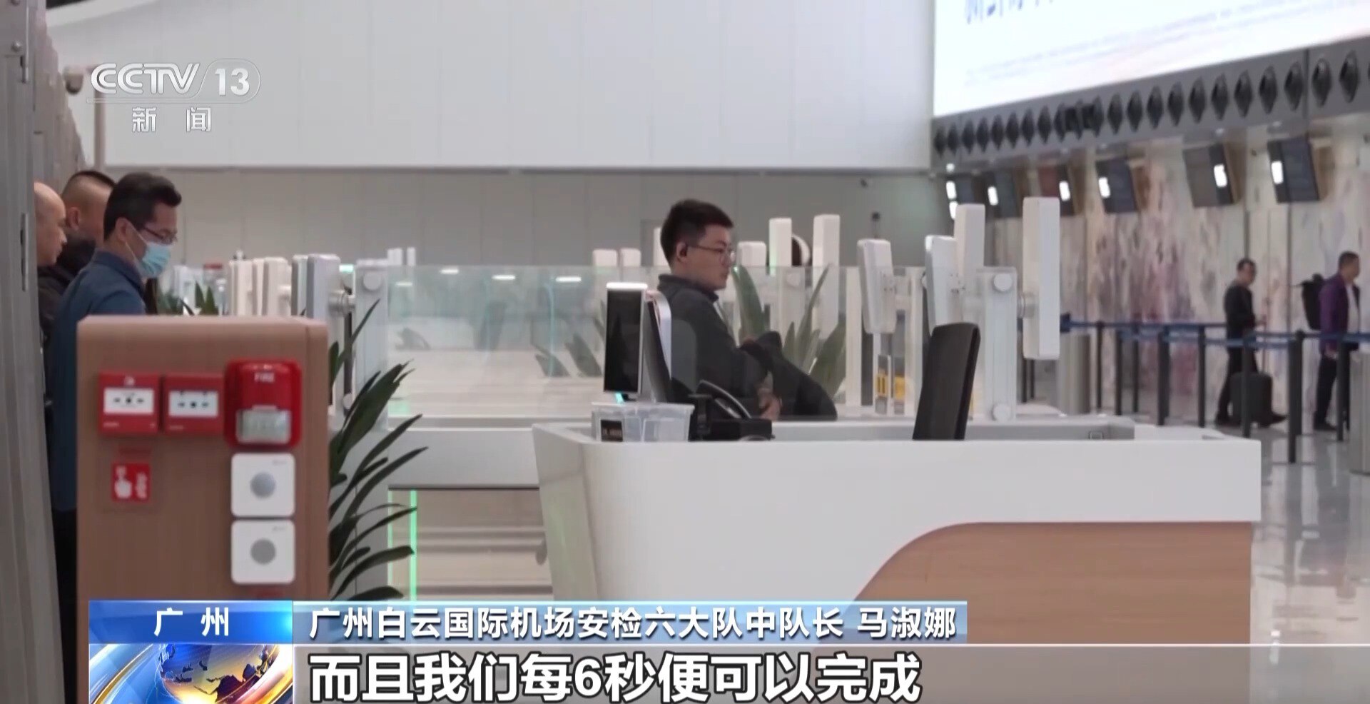广州白云国际机场安检六大队中队长 马淑娜:旅客操作起来也非常简单,每6秒便可以完成一个旅客的身份核验,阅读器也支持多证件的阅读,例如身份证 护照以及港澳通行证等。