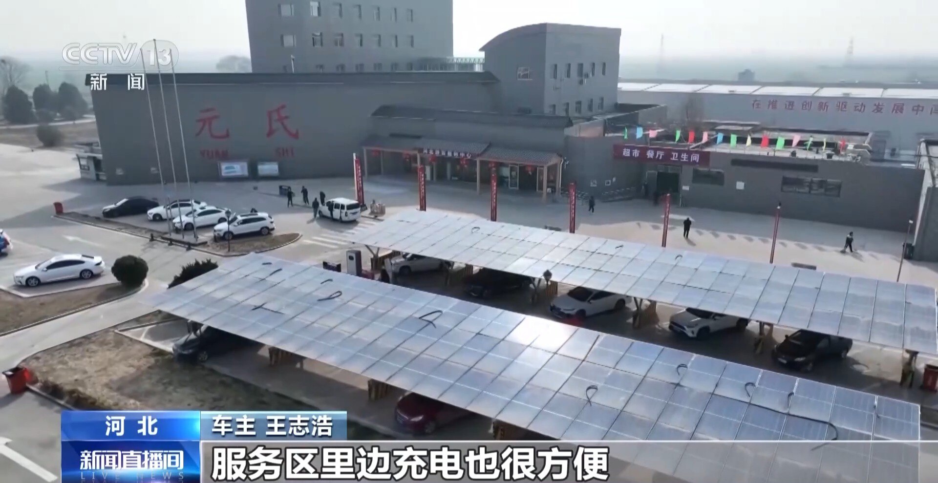 车主 王志浩:跑高速车道很多,服务区里边充电也很方便,吃完饭上车电就满了,高速出行挺舒服的。