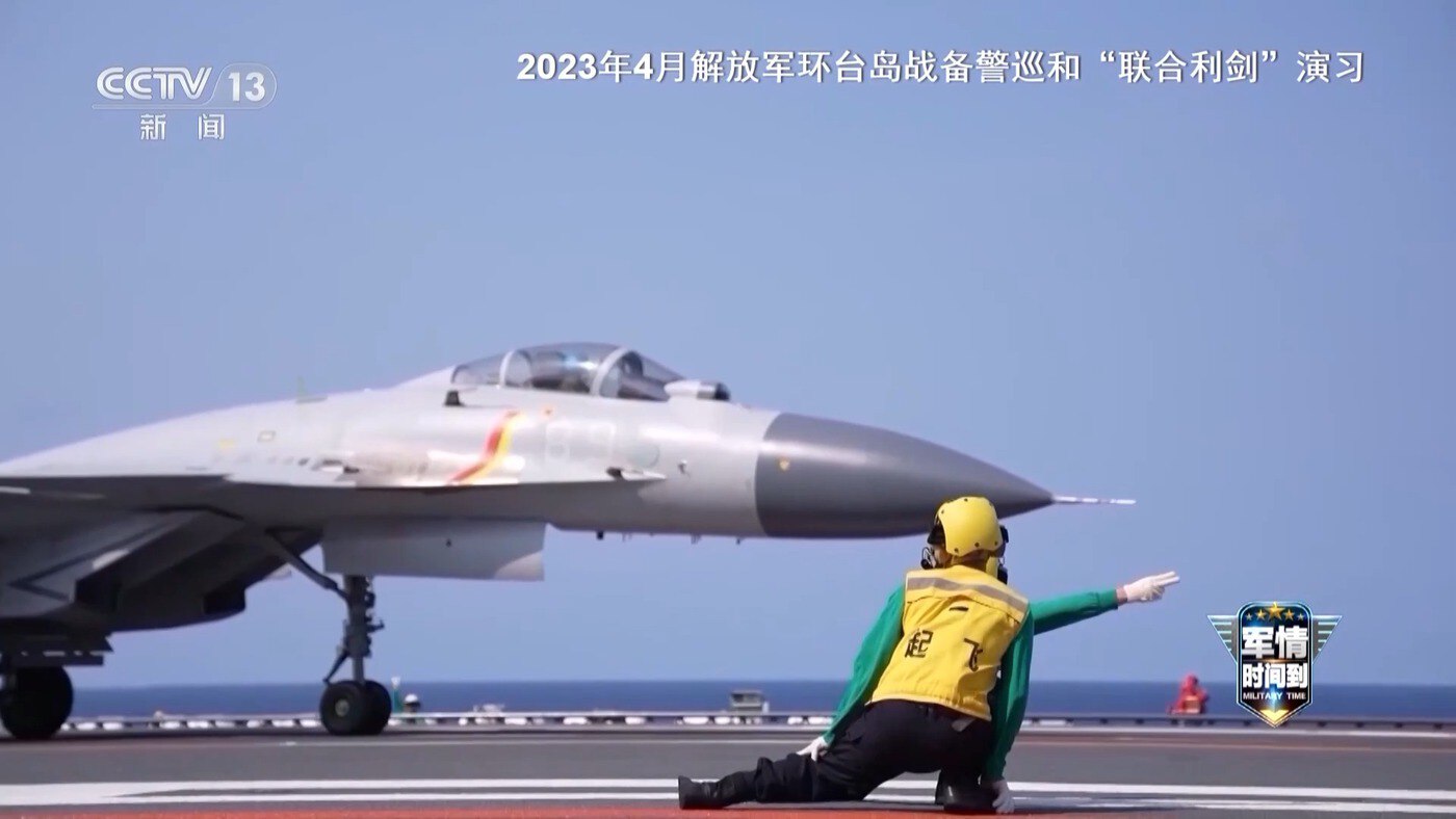 2023年4月8日至10日,东部战区在台湾海峡和台岛北部、南部和台岛以东海空域组织环台岛战备警巡和“联合利剑”演习。山东舰航母编队首次参演,与前出的战区海空力量密切协同,组织区域制空、对海突击、支援策应等科目演练。