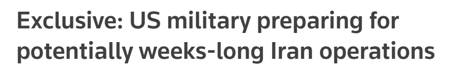 据路透社报道,美军正为可能持续数周的针对伊朗的军事行动做准备。