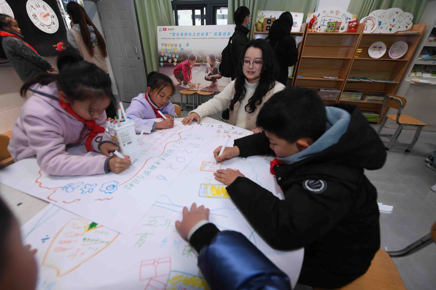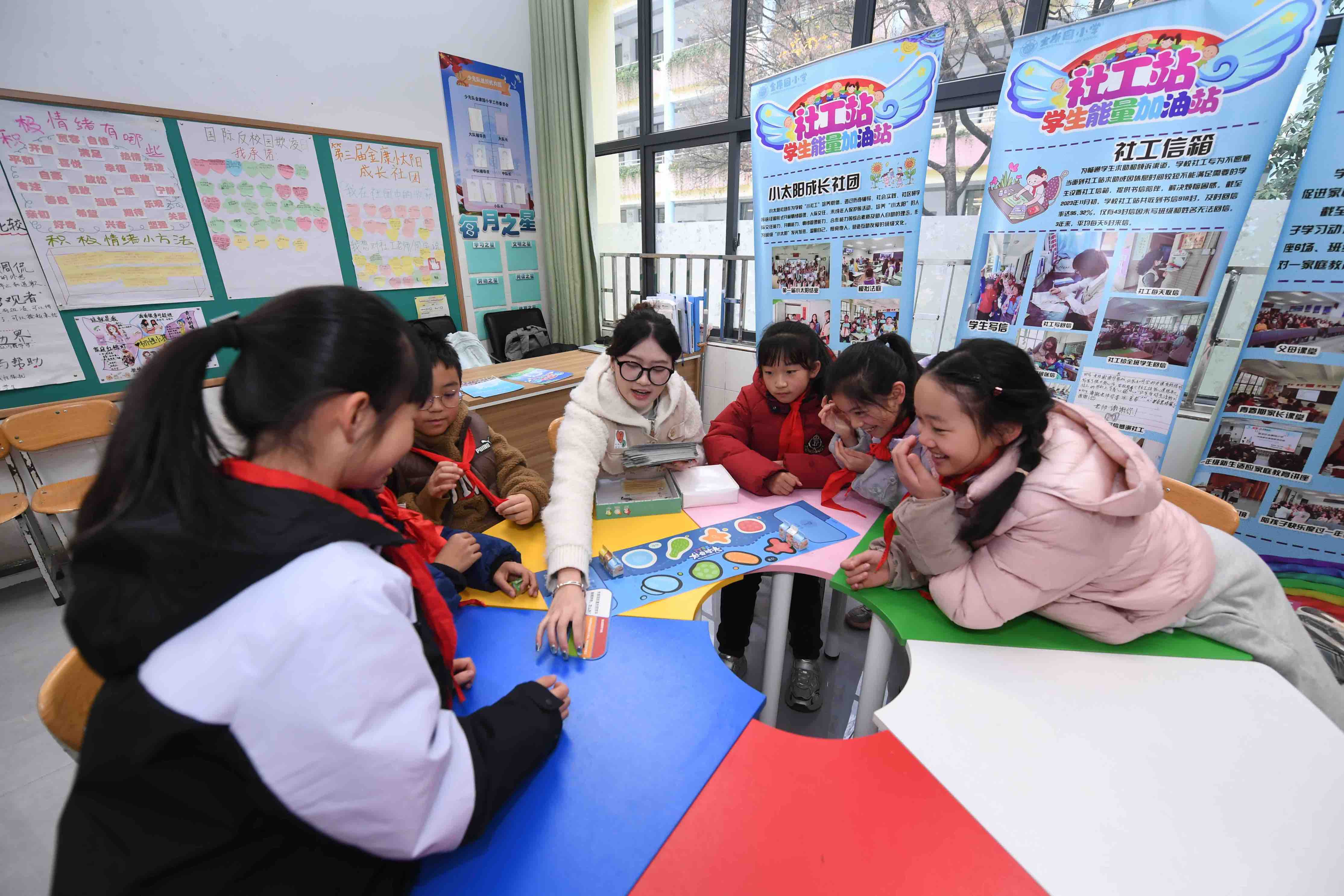 在盘龙区金康园小学,全省首个校园社工站已运行五年,学校以“政—校—家—社”协同的方式开展嵌入式学校社会工作服务探索。学校社工站全天候开放,孩子们课间涌进社工站搭乐高、玩桌游、和社工聊天、看书等等,社工站成了学生放松解压的能量加油站。社工站外设有可爱的“社工信箱”。“这是孩子们的‘树洞’,他们可以随时倾诉烦恼,并获得帮助。”驻校社工张译丹介绍,截至目前,社工信箱已收到1900多封来信,社工一对一手写回信,回信率100%。同时,社工还以个案服务、小组服务、社工课堂、社团活动、主题活动、主题班会等方法和途径回应学生、家长、教师个体和群体的需求,并构建起家校社协同育人“教联体”建设下的学校心理健康服务体系。